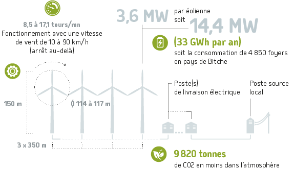 – un ou plusieurs postes de livraison électrique, concentrant l’électricité des éoliennes et organisant l’évacuation de l’électricité produite vers le réseau public d’électricité au travers du poste source local (point d’injection de l’électricité sur le réseau public) ;
