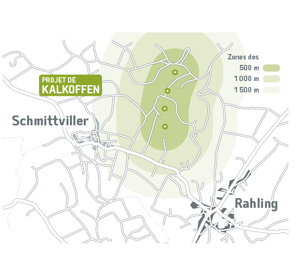 À l’est de la région Lorraine, dans le département de la Moselle, le Pays de Bitche dispose d’un gisement de vent propice au développement éolien, suffisamment en retrait des bassins de vie et des espaces boisés ou emblématiques du parc naturel régional des Vosges du Nord. Le projet de parc éolien est situé au nord de la commune de Rahling au lieu-dit Kalkoffen. Il prévoit l’installation de 4 éoliennes pour une puissance totale de 14,4 MW.